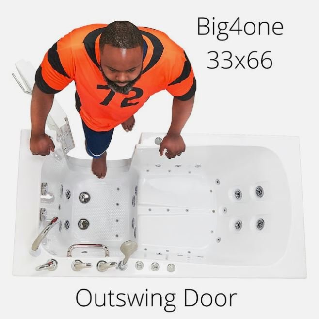 Big4One Walk-In Tub with Outward Swing Door 33″ x 66″ (84 x 168cm) Dual Drain Technology